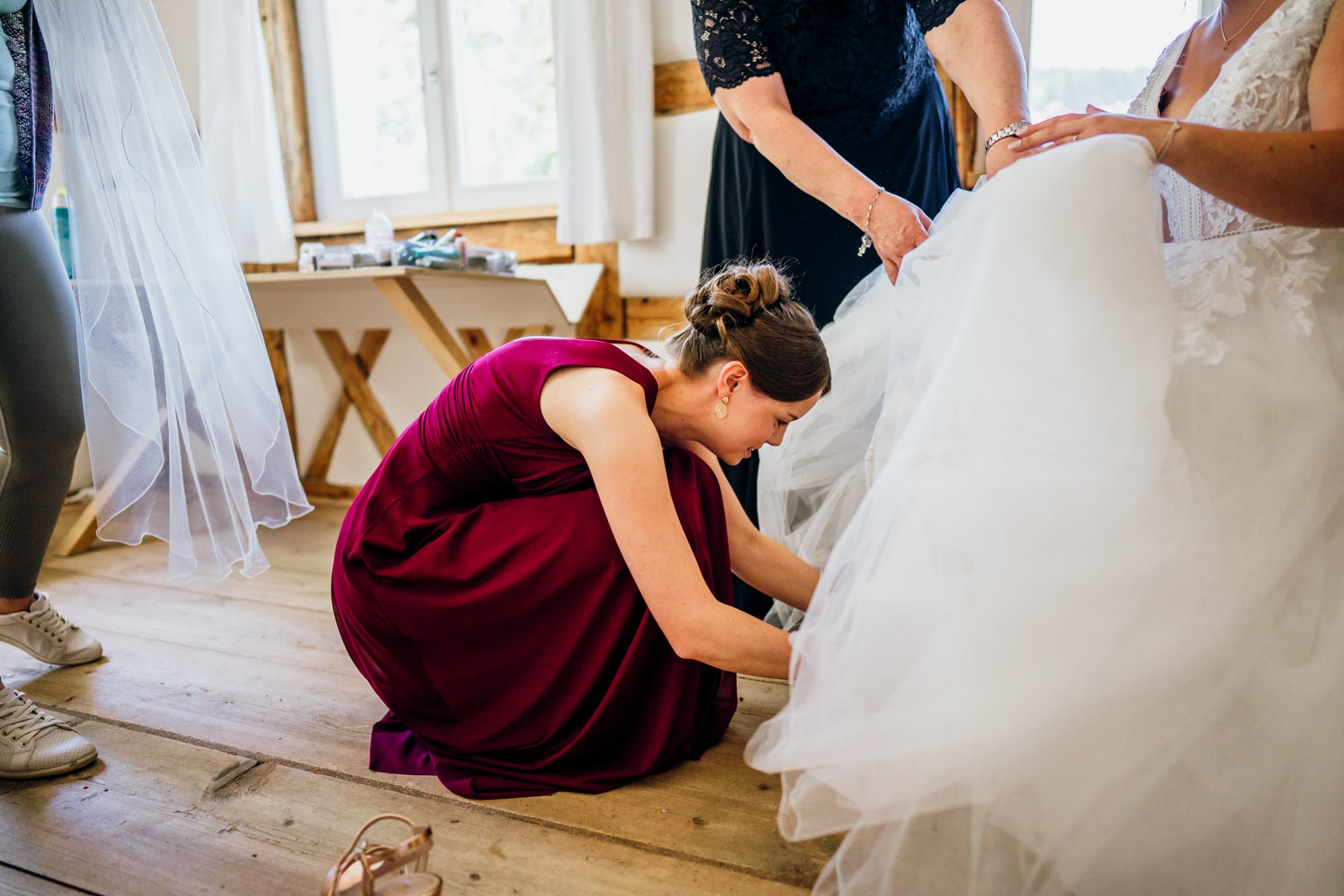 Der Tag startete wie so viele unvergessliche Hochzeiten: mit dem Getting Ready. Während die Braut sich gemeinsam mit ihren besten Freundinnen vorbereitete, herrschte diese wunderbare Mischung aus Aufregung, Vorfreude und ein wenig Nervosität. Die Atmosphäre war einfach magisch – Lachen, kleine Freudentränen und dieses Gefühl von „heute ist DER Tag“.