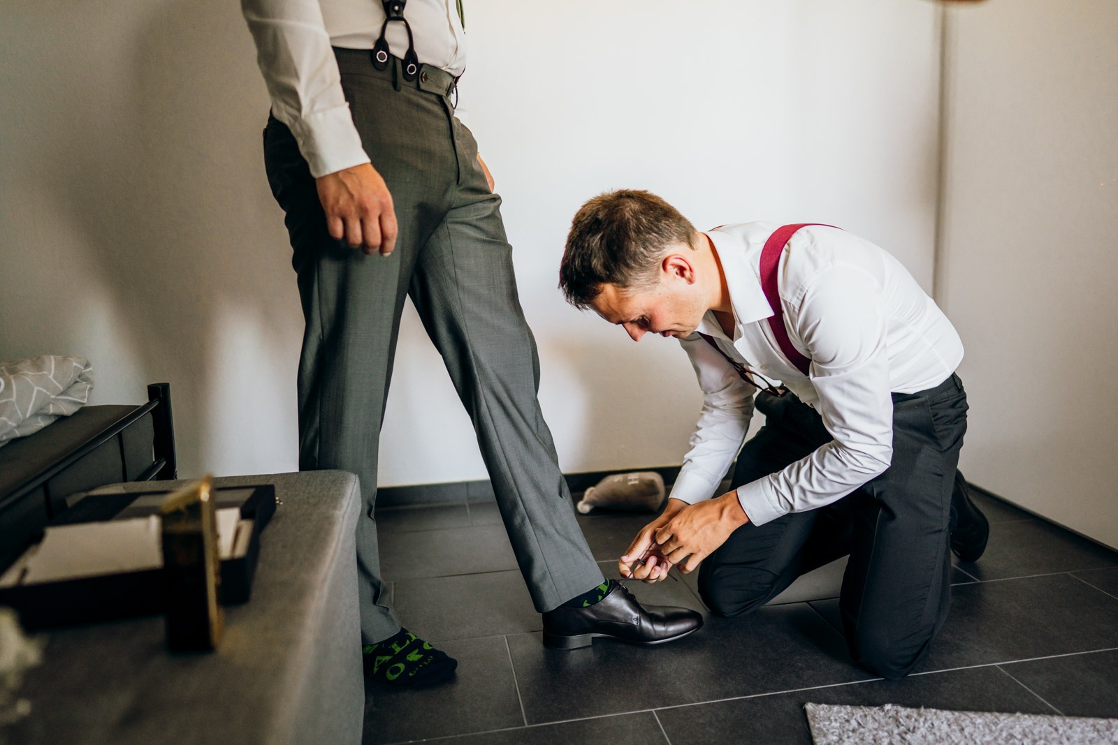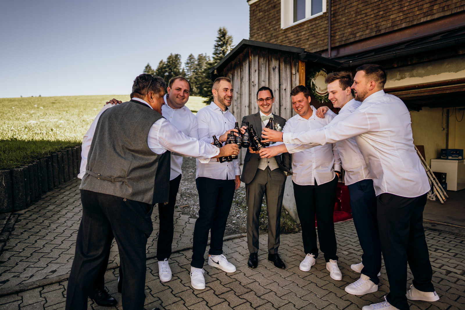 Parallel dazu bereitete sich der Bräutigam mit seinen Jungs vor. Auch hier: viel Spaß, aufmunternde Worte und diese typisch männliche Art, mit der Aufregung umzugehen. Seit 2009 begleiten wir Paare in München, Bayern und weltweit. Wir wissen, wie schnell euer großer Tag vergeht – und wie wichtig es ist, all die kleinen und großen Momente festzuhalten.