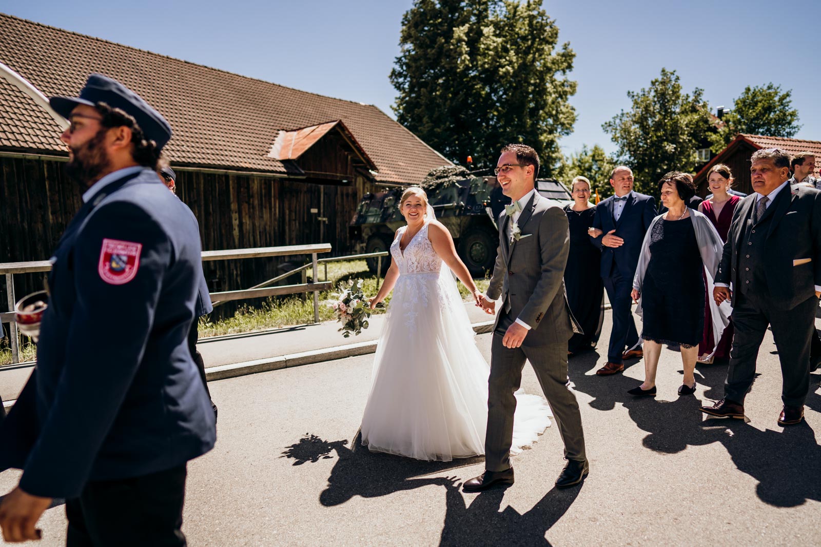 In der Feier-Location wartete bereits das nächste Highlight: Die örtlichen Vereine hatten sich kleine Auftritte überlegt! Feuerwehr und Fußballverein zeigten, dass sie nicht nur in ihrem Hauptbereich talentiert sind, sondern auch echte Entertainer sein können.