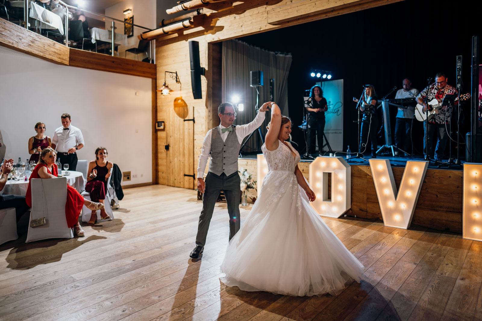 Danach wurde natürlich ordentlich getanzt. Der romantische Hochzeitstanz, der emotionale Vater-Tochter-Tanz und schließlich die ausgelassene Partystimmung – alles was eine perfekte Hochzeitsfeier ausmacht.